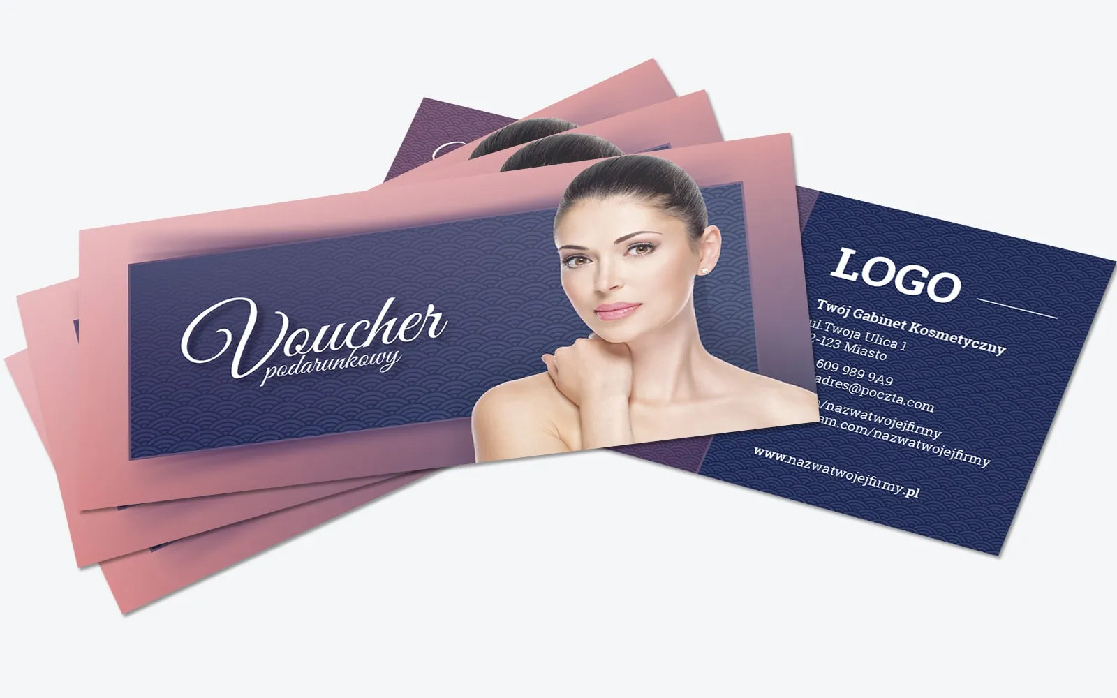 Szukasz idealnego wzoru vouchera podarunkowego dla swojego salonu kosmetycznego, gabinetu stylizacji paznokci lub zakładu fryzjerskiego? Nie trać czasu i energii na projektowanie od podstaw – skorzystaj z gotowego wzoru, który możesz swobodnie dostosować do swoich potrzeb. Nasz bon podarunkowy o wymiarach 99×210 mm można edytować pod względem rozmieszczenia poszczególnych elementów graficznych oraz treści. Dzięki temu możliwe jest umieszczenie w nim indywidualnych informacji o usługach, promocjach czy wyjątkowych ofertach dostępnych w Twoim salonie.