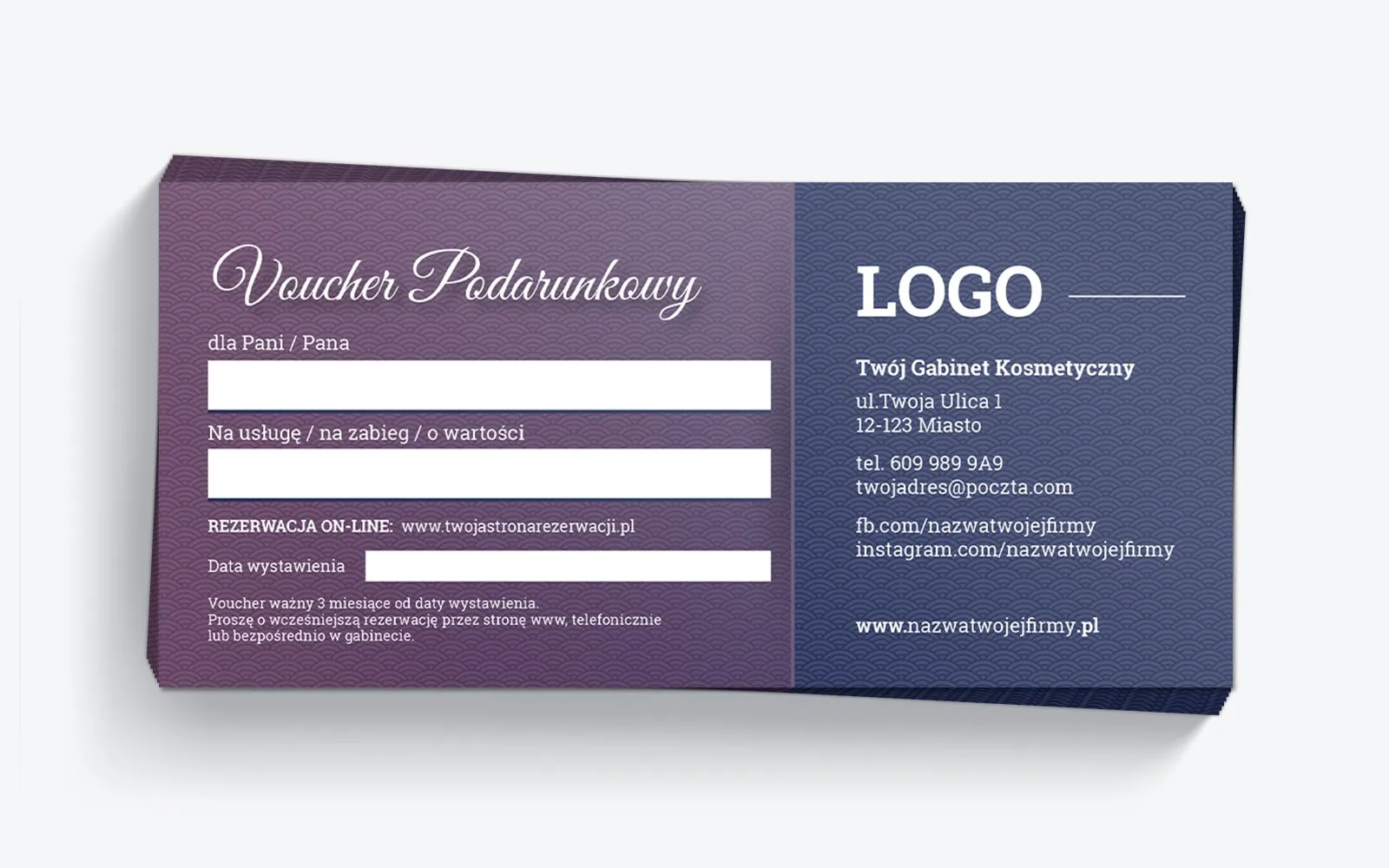 Projekt vouchera podarunkowego z możliwością swobodnej edycji