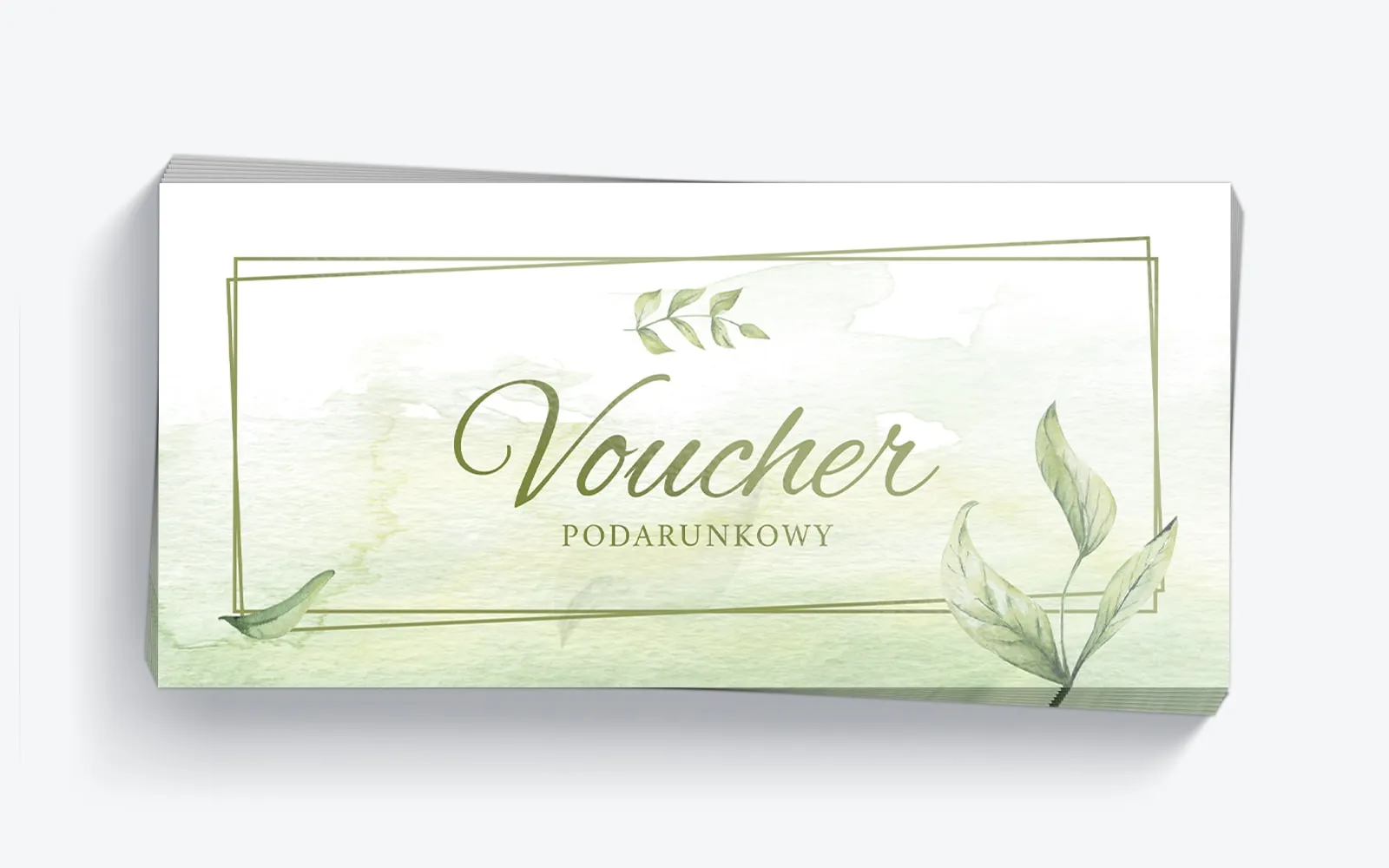 Subtelny w wyrazie voucher podarunkowy to doskonała propozycja dla najbardziej wymagających klientów, ceniących eleganckie i minimalistyczne rozwiązania. Z myślą o nich przygotowaliśmy uniwersalny wzór z motywem roślinnym, wykonany w technice akwareli, która dodaje mu lekkości i wyjątkowego uroku. Przedstawiony tutaj bon idealnie sprawdzi się w różnych sytuacjach: jako nagroda w konkursie na firmowym fanpage’u, miły gest wobec stałych klientów, czy skuteczna zachęta do ponownego skorzystania z oferty firmy. Klienci mogą go również nabyć jako elegancki prezent urodzinowy lub świąteczny dla bliskiej osoby. Delikatna stylistyka tego vouchera będzie świetnie współgrać z działalnością salonów z szeroko rozumianej branży kosmetycznej, w której estetyka i dbałość o detale odgrywają kluczową rolę.