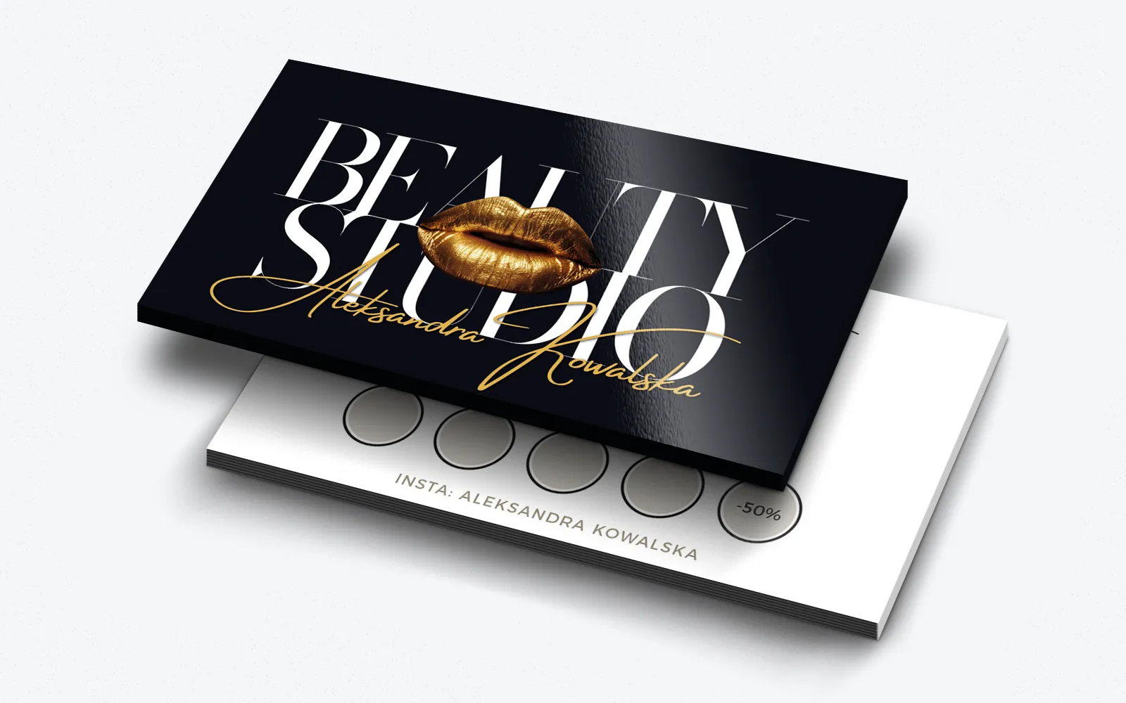 Podkreśl swoją wyjątkowość i profesjonalizm – wybierz wizytówkę, która będzie Twoim znakiem rozpoznawczym w branży beauty. Skontaktuj się z nami już dziś, aby zamówić tę niezwykle efektowną i elegancką wizytówkę!